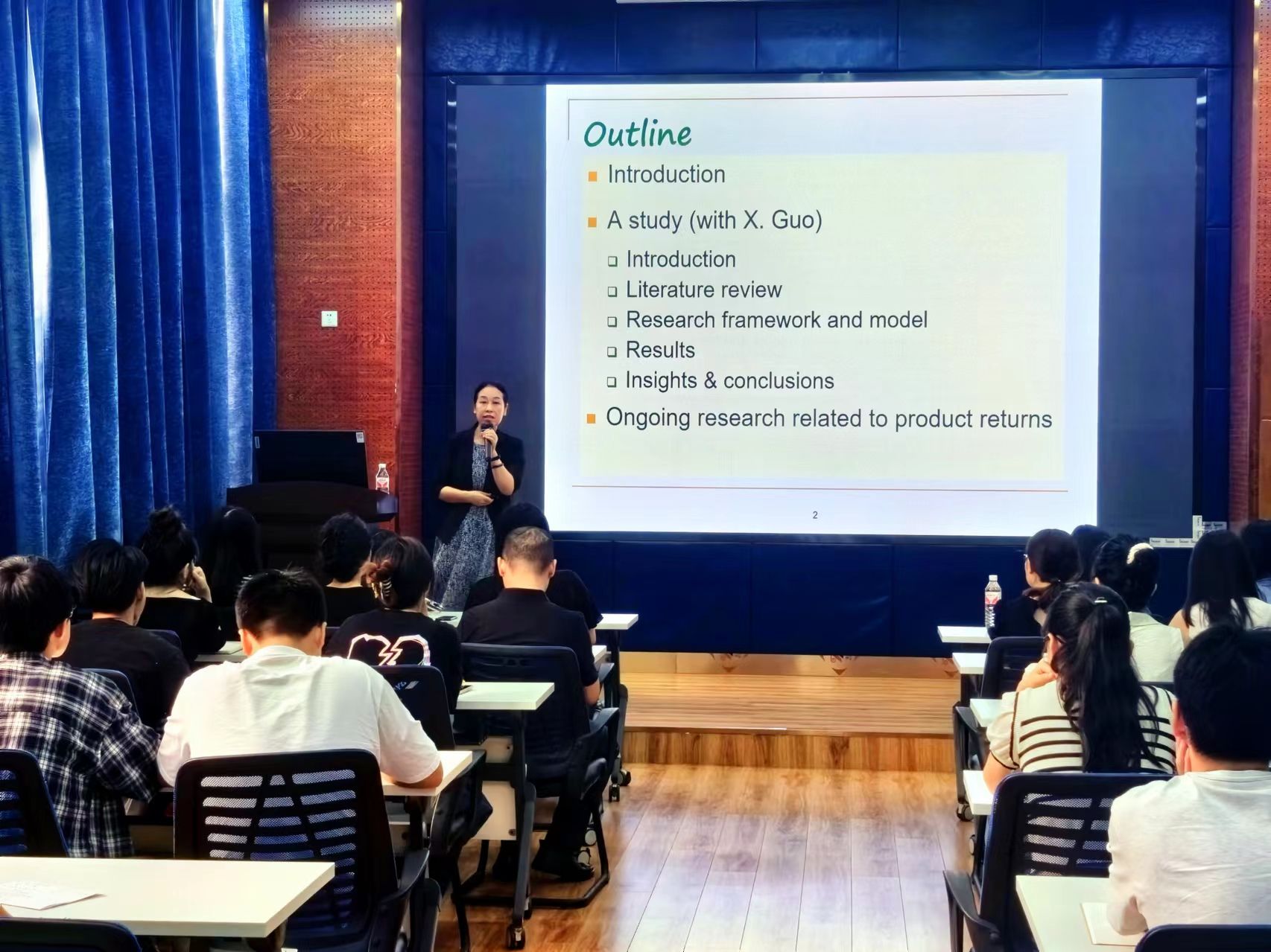 6月19日上午,加拿大达尔豪斯大学的陈静教授应邀为学院师生作题为“Managing Customer Returns in the Supply Chain”的学术分享。此次学术讲座由学院副院长聂佳佳教授主持,学院部分教师及研究生参加了此次学术交流活动。聂佳佳对陈静教授的学术成果进行了介绍,并对陈静教授的来访表示热烈的欢迎与感谢!