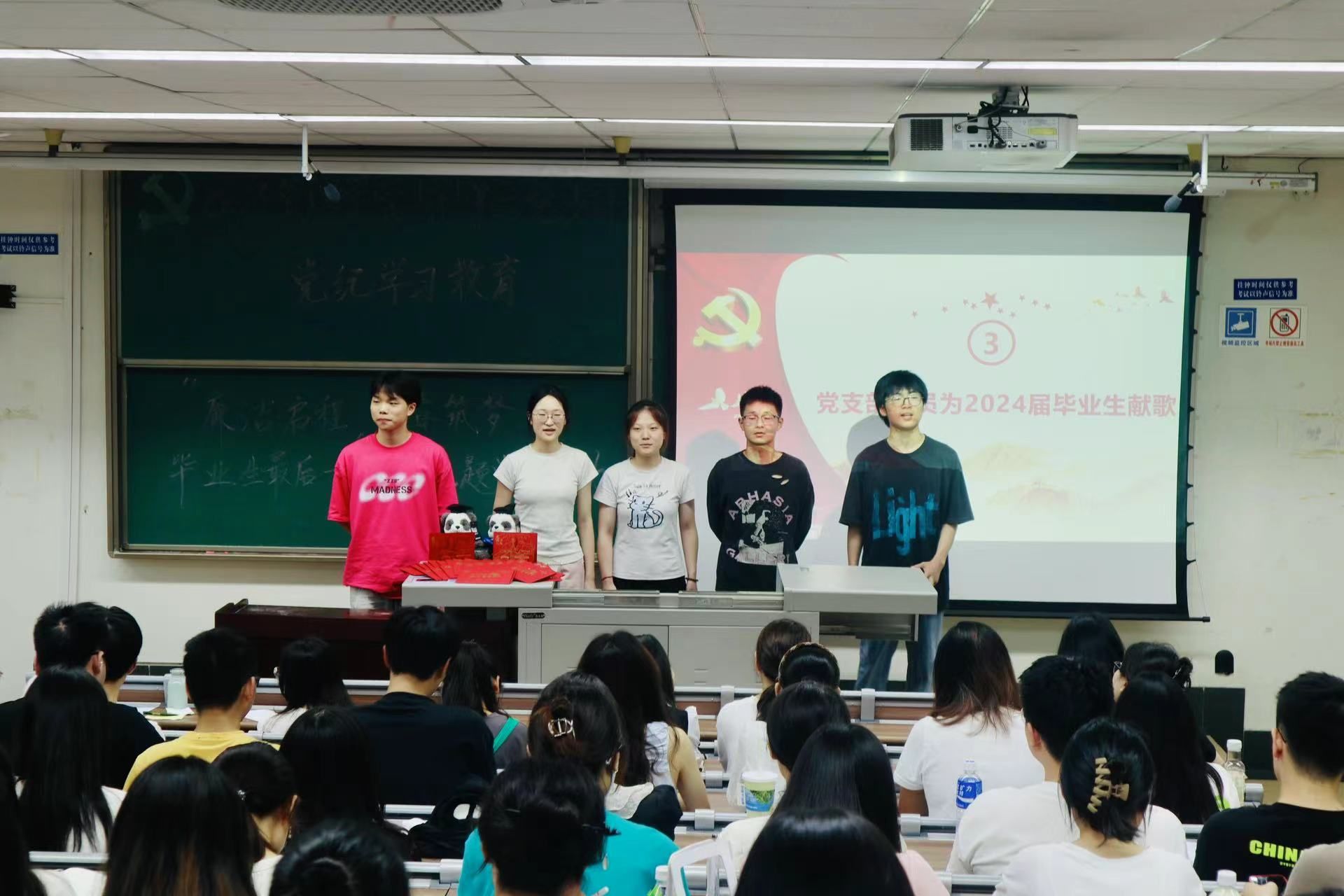 为深入学习贯彻习近平新时代中国特色社会主义思想和党的二十大精神,开展好党纪学习教育,进一步增强毕业生党员的党性意识和社会责任感,6月20日,必赢76net官网本科第二党支部于J4310开展党纪学习教育——“廉洁启程,青春筑梦”毕业生最后一堂党课主题党日活动。