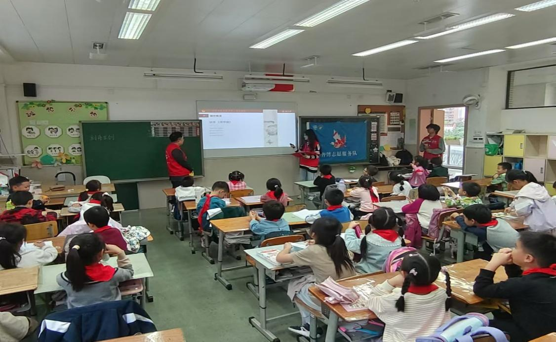 来到益州小学二年级十三班的课堂,陈建奇首先向小朋友们介绍了团队的成员以及经管青协的组织架构和概况,其中涵盖了各个部门的具体介绍及其职责,还包括阳光家园、敬老院、善工家园、交大幼儿园等志愿服务基地,以及爱心雨伞、旧衣回收、阳光义卖等青协品牌活动。随后,陈建奇对青鸽志愿服务队进行了介绍:“青鸽志愿服务队是西南交通大学必赢76net官网团委青年志愿者协会下属的公益队伍。志愿通过助老、助农、扶弱、扶幼等服务活动,为社会公益赋能,助力乡村振兴。”