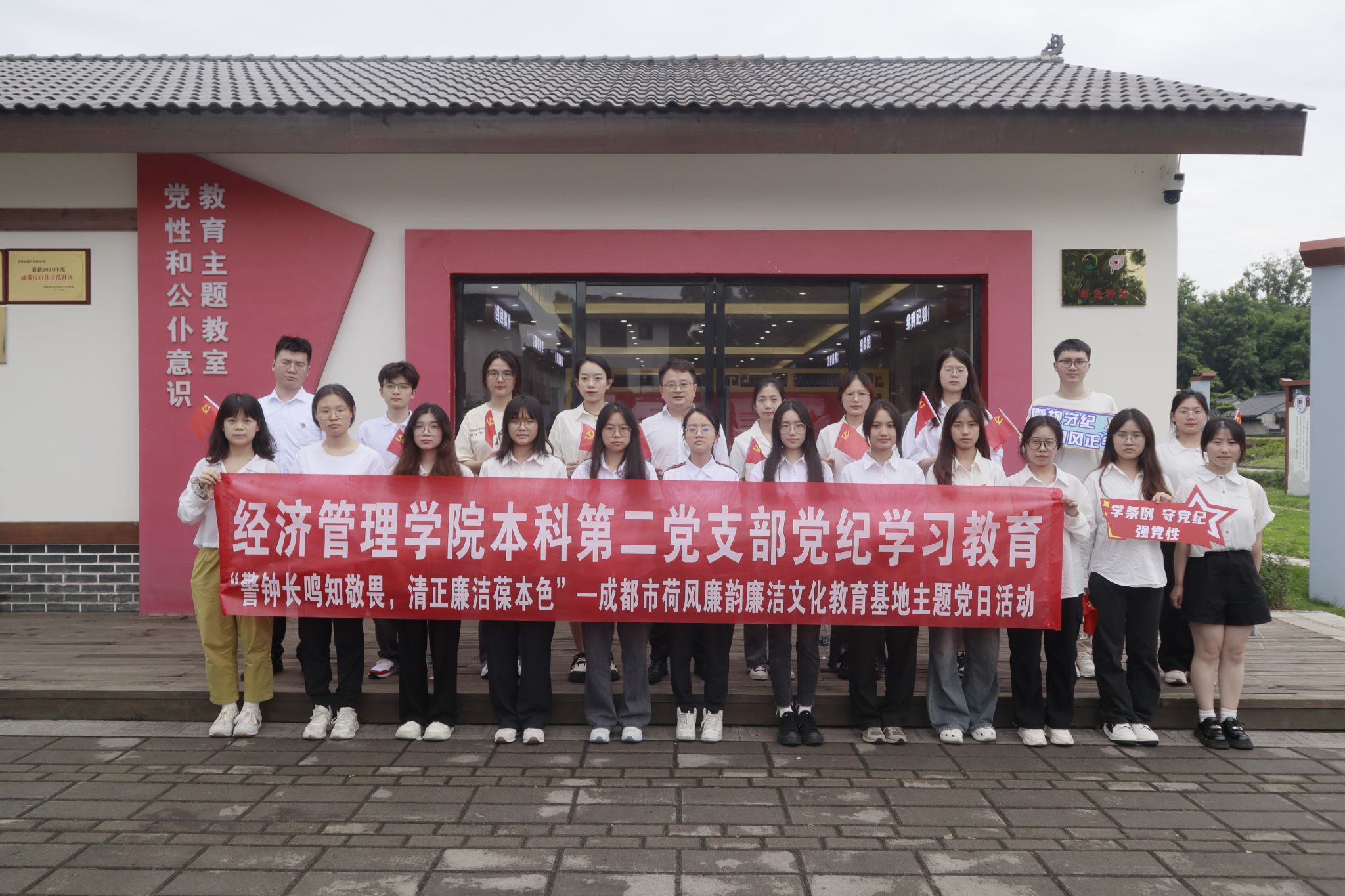 为扎实推进党纪学习教育,切实做到知纪于心,立纪于身,化纪于行,推动党纪学习教育入脑入心,走深走实,进一步抓好廉洁文化建设,筑牢拒腐防变的思想道德防线。2024年6月7日,必赢76net官网本科第二党支部22名党员、积极分子在党支部书记陈建奇带领下,前往位于四川省崇州市隆兴镇的“荷风廉韵”廉洁文化教育基地,实地开展党纪学习教育——“警钟长鸣知敬畏,清正廉洁葆本色”主题党日活动。