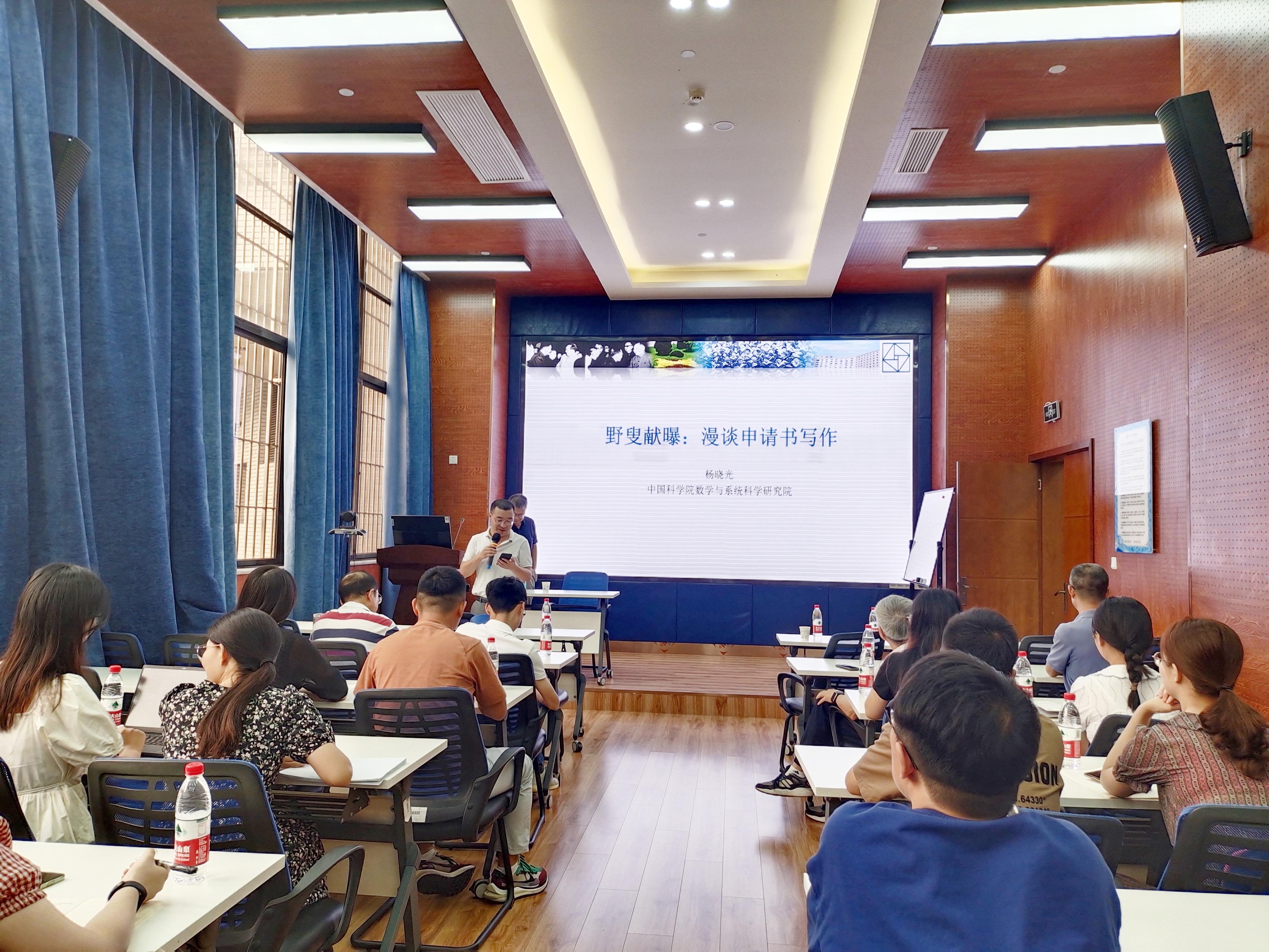 2023年9月13日下午14:30,中国科学院数学与系统科学研究院杨晓光研究员应邀在九里校区0218室为学院师生作“野叟献曝:漫谈申请书写作”的讲座。此次学术活动由必赢76net官网副院长聂佳佳教授主持,学院部分青年教师以及研究生参加此次活动。