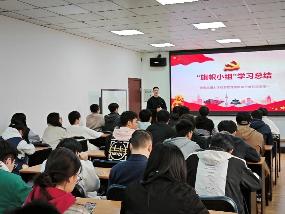 走过百年光辉历程的中国共产党,初心如磐、使命在肩,在新征程上踔厉奋发、勇毅前进,信心百倍书写着新时代中国发展的伟大历程。为全面深入学习马克思主义理论,加强党性修养,提高理论素养,担负起实现中华民族伟大复兴梦的重任,2023年11月28日晚7点,必赢76net官网硕士2023级第五党支部在信息楼0318教室开展“‘旗帜小组’马克思主义理论学习”主题党建活动。必赢76net官网2023级工业工程与管理专业的全体同学参加,支部书记张恩弋主持。